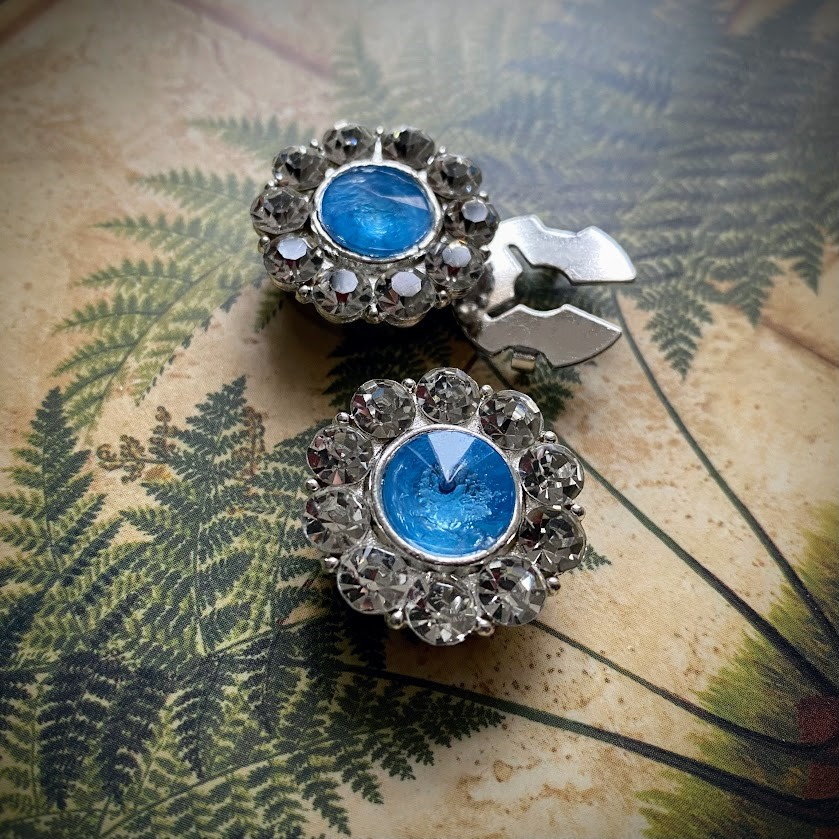 Nämä taivaansinisellä lasilla ja pienillä kristalleilla viimeistellyt BelBottone-nappikoristeet antavat hetkessä asullesi persoonallisen, viimeistellyn ilmeen.