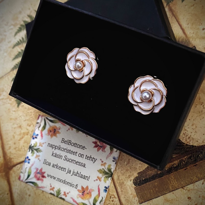 Nämä emaloidut BelBottone-nappikoristeet on viimeistelty pienellä helmellä. Ne antavat hetkessä asullesi persoonallisen, viimeistellyn ilmeen.