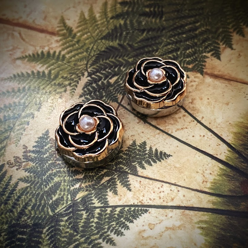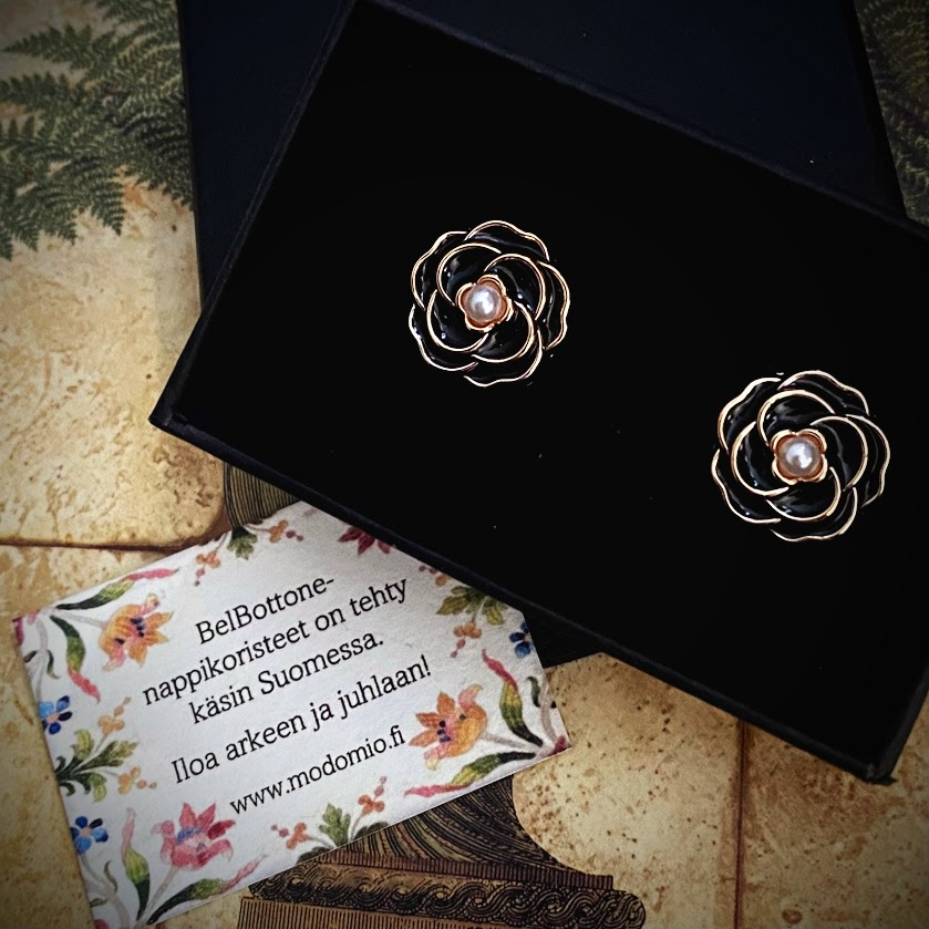 Nämä emaloidu BelBottone-nappikoristeet on viimeistelty pienillä helmillä. Ne antavat hetkessä asullesi persoonallisen, viimeistellyn ilmeen.