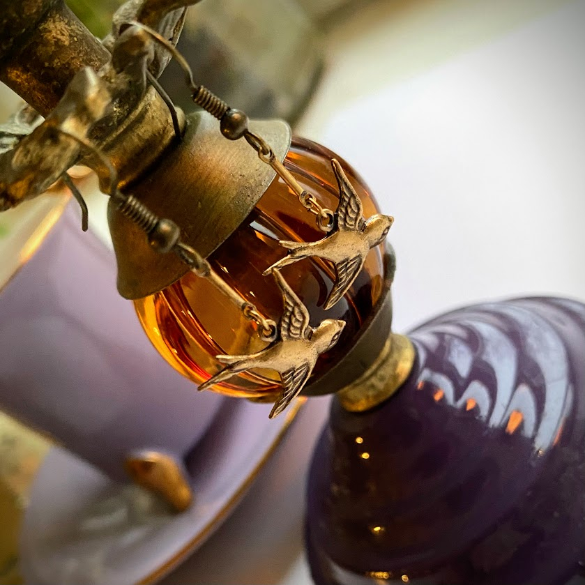 Kauniisti muotoillut, antiikkimessinginväriset pääskyset lennähtelevät keveästi.