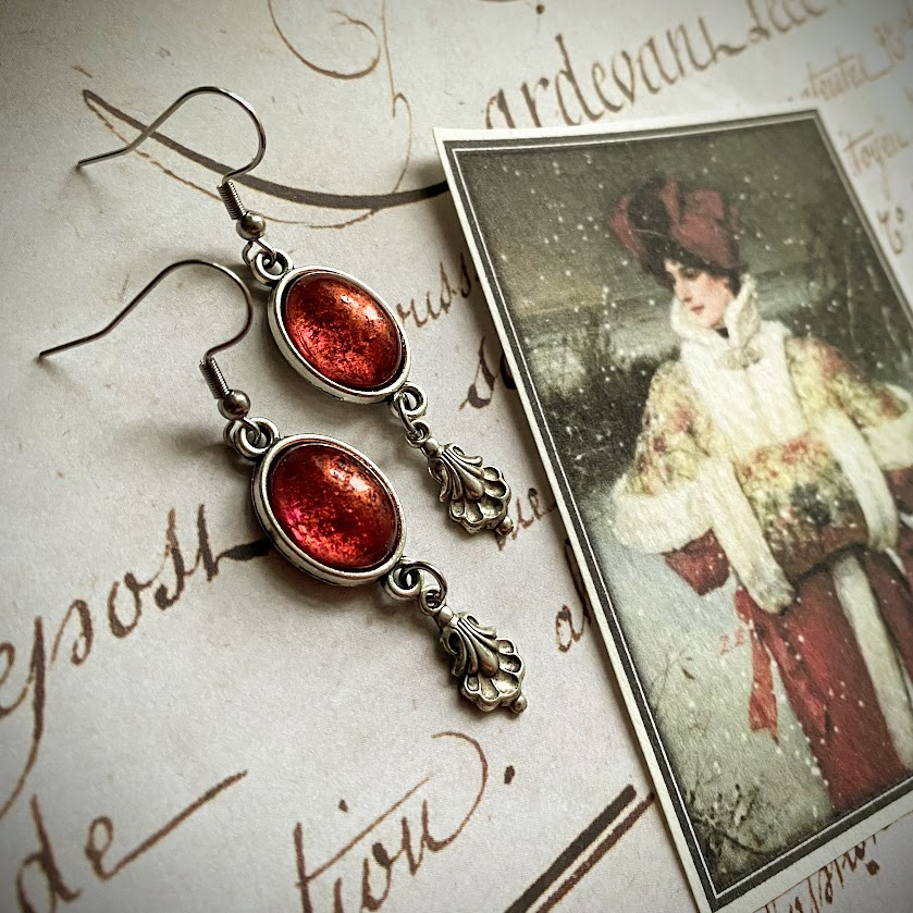 Kauniisti valoa heijasteleva italialainen lusiittisoikio on upotettu antiikkihopeanväriseen kehykseen. Korvakorut on viimeistelty viehättävällä simpukkadetaljilla, joka antaa niille naisellisen liikkeen.