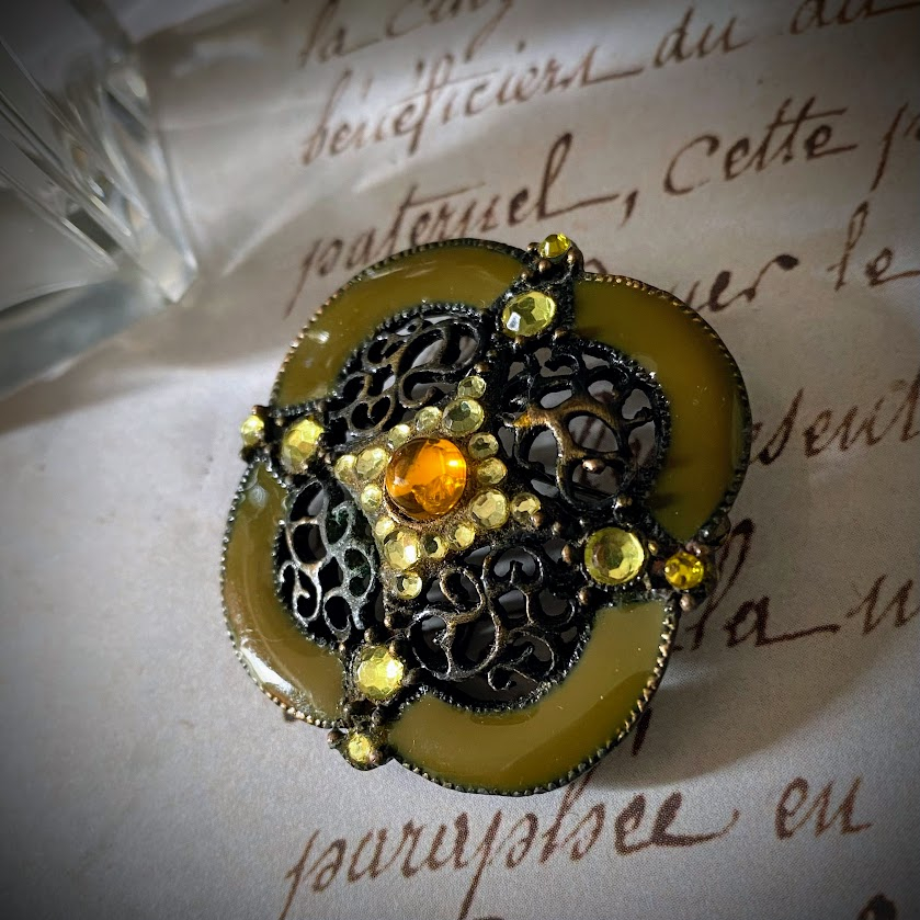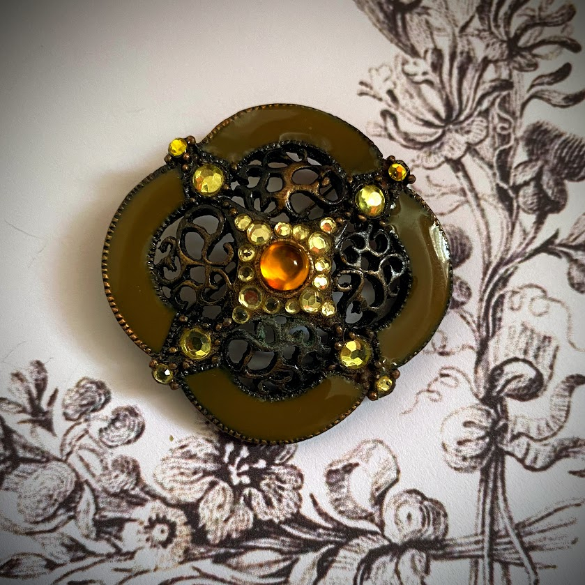 Tämä kauniisti muotoiltu, emaloitu rintaneula on peräisin 50-luvulta.