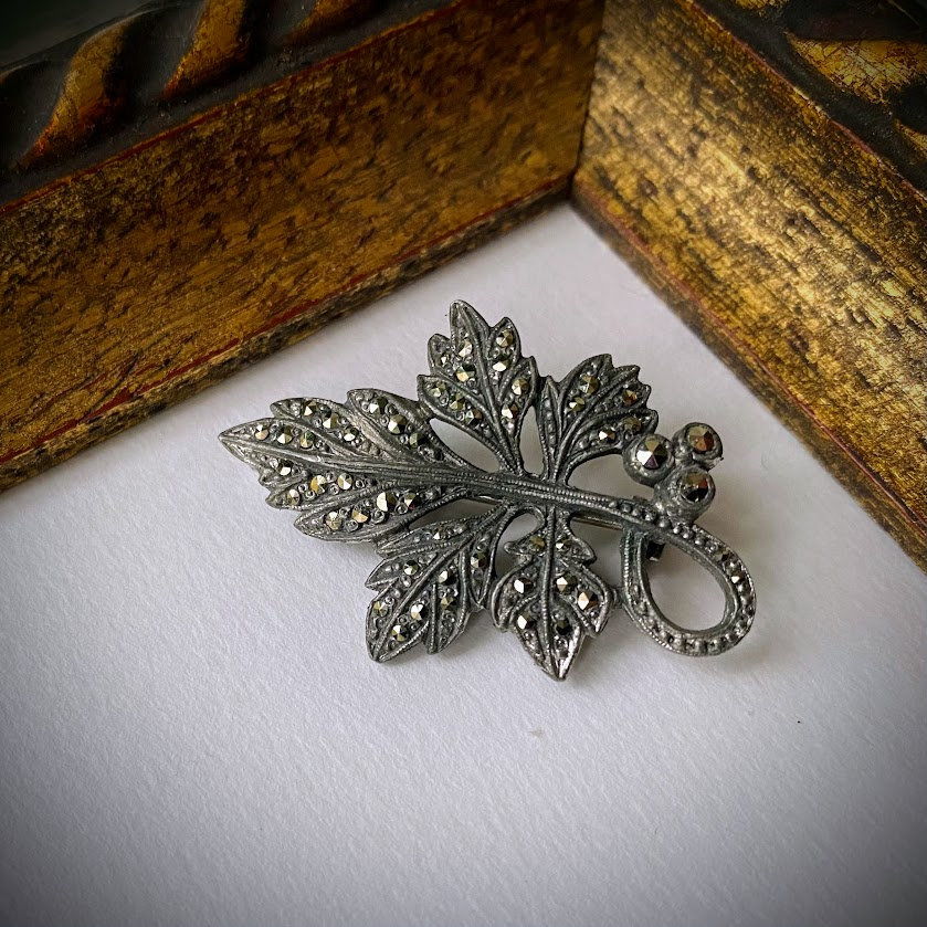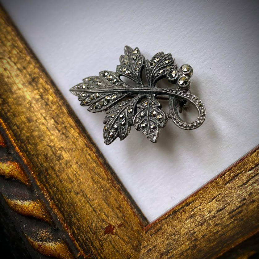 Kauniisti muotoiltu rintakoru on peräisin 50-luvulta. Se on koristeltu pienillä markasiiteilla.