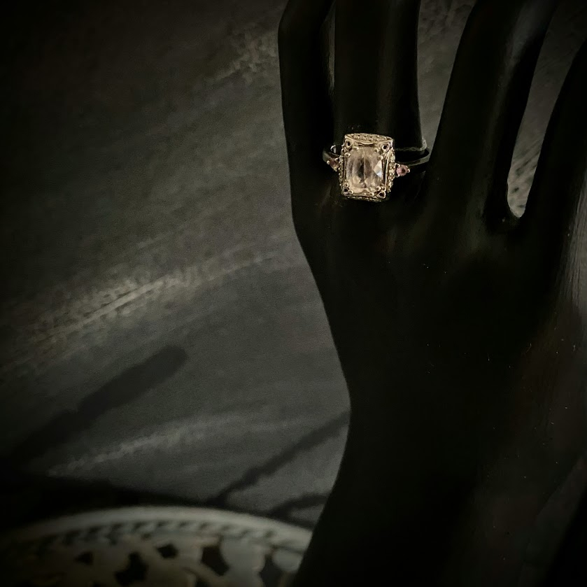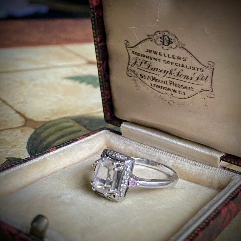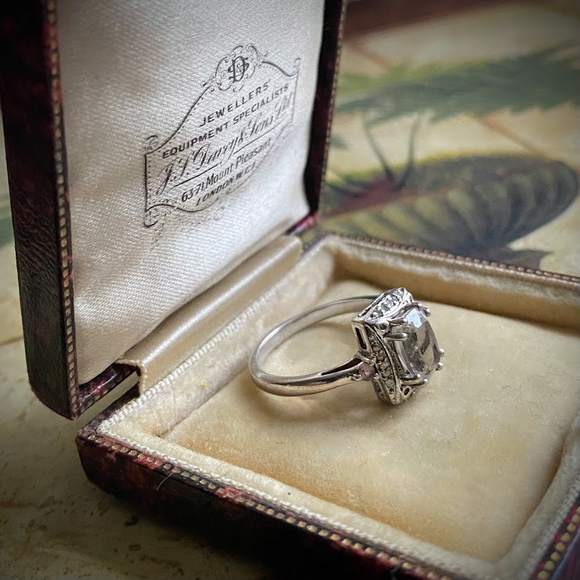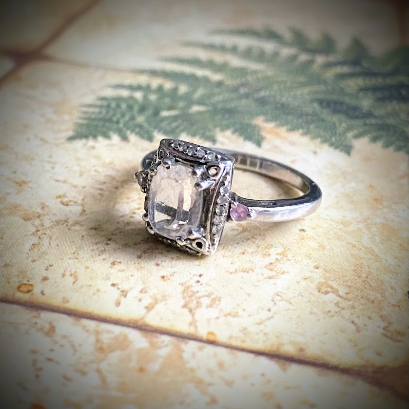 Tätä upeasti hiottua, kauniisti valoa taittavaa aitoa zirkonia ympäröi hopeakehys, johon on upotettu pieniä zirkoneja. Sormus on peräisin edvardiaaniselta ajalta ja se on hyvässä kunnossa.