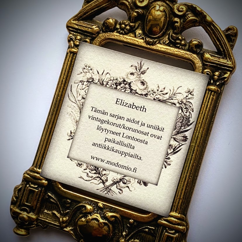 Elizabeth-sarjaan kuuluu aitoja, englantilaisia vintagekoruja, jotka ovat löytyneet lontoolaisten antiikkikauppiaiden valikoimista.