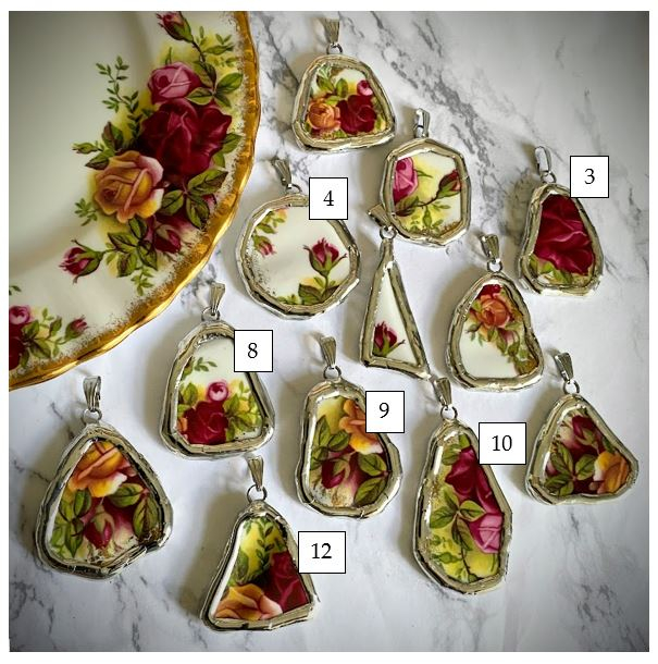 Bellezza Spezzata -koru on kokonaan käsintehty Suomessa. Riipus on tehty rikkoutuneen lautasen osasesta. Tällä tavoin se saa uuden elämän. Kehys on juotettu puhtaasta, lyijyttömästä korutinasta.