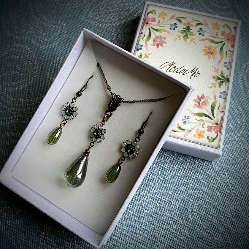 Modo Mio 005 -korusetin kukat on viimeistelty Swarovski-kristalleilla. Lasipisarat ovat tsekkiläistä käsityötä.