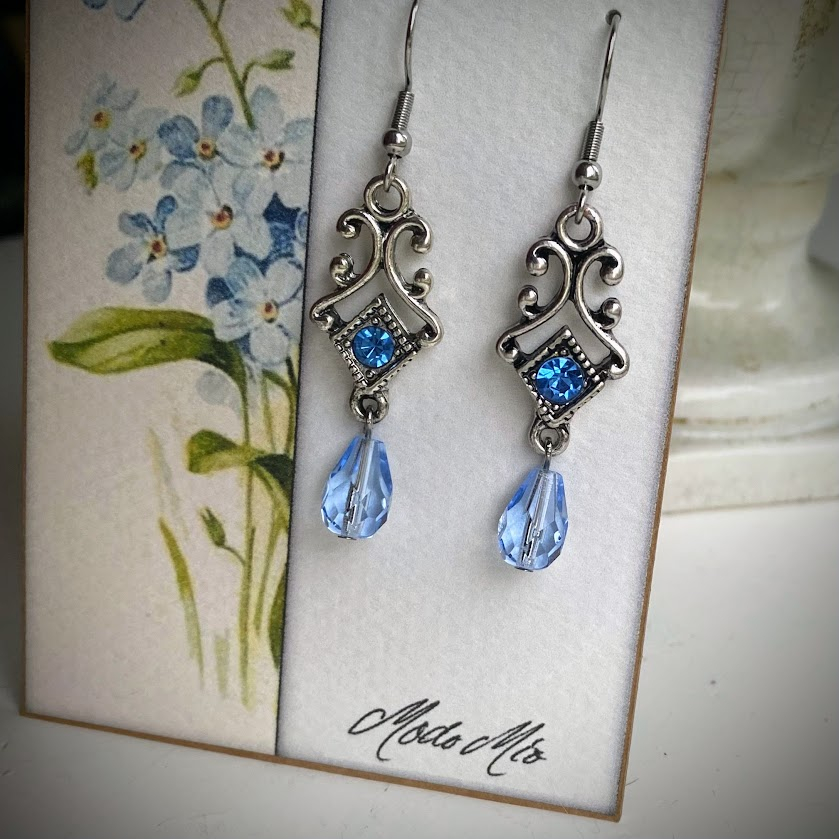 Angelica Celeste -korvakoruissa on kaunis muoto ja hillitty, vaalean safiirinvärinen kimallus. Korut ovat kevyet käyttää ja sopivat hyvin sekä arkeen että juhlaan.