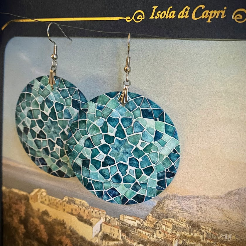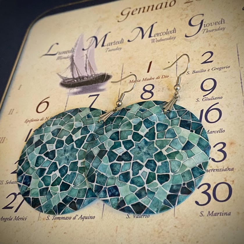 Pyöreät Laguna Mediterranea -korvakorut on tehty aidosta helmiäisestä. Kaunis ja erittäin kestävä painatus hohtaa ohuen helmiäislevyn ansiosta valoa viehättävällä tavalla. Korvakorut ovat hyvin keveät käytössä. Osat on toteutettu venetsialaisessa korupajassa.