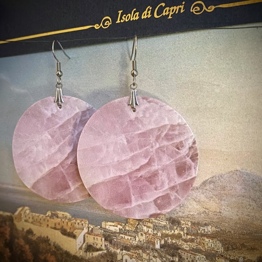 Pyöreät Laguna Mediterranea -korvakorut on tehty aidosta helmiäisestä. Kaunis ja erittäin kestävä painatus hohtaa ohuen helmiäislevyn ansiosta valoa viehättävällä tavalla. Korvakorut ovat hyvin keveät käytössä. Osat on toteutettu venetsialaisessa korupajassa.