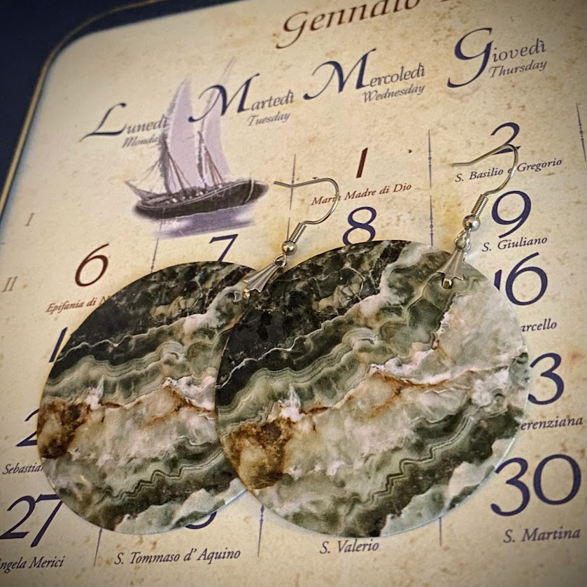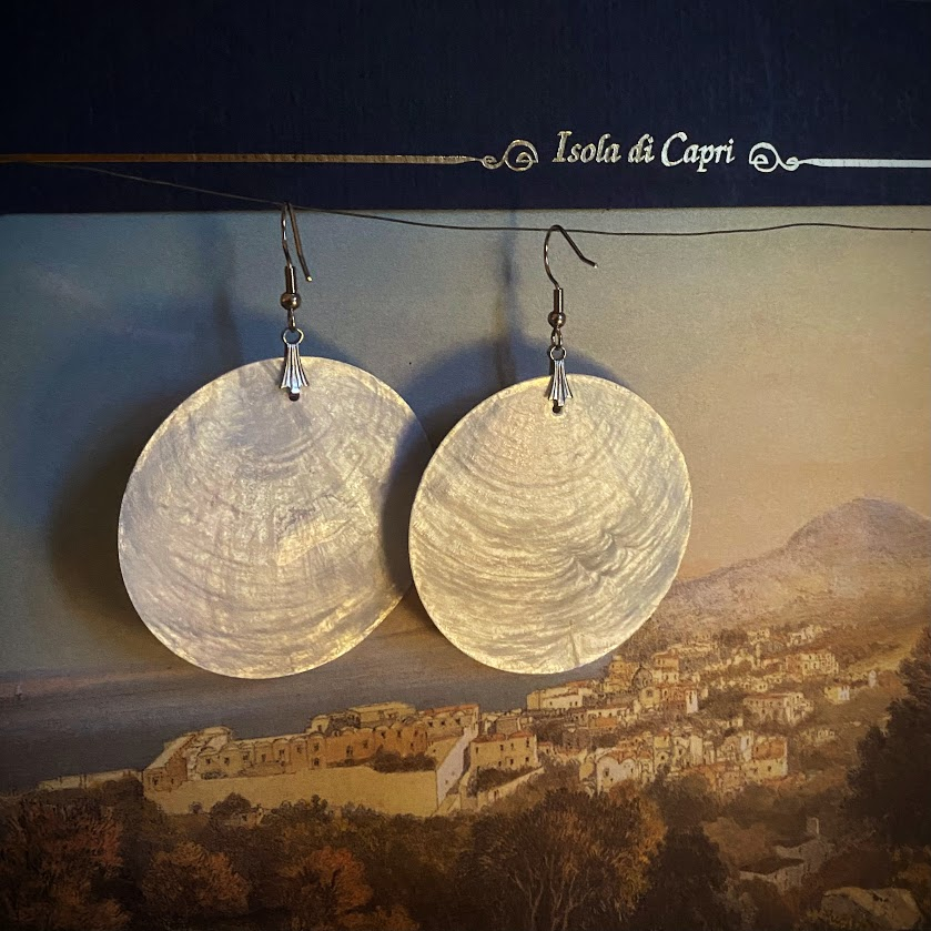 Pyöreät Laguna Mediterranea -korvakorut on tehty aidosta helmiäisestä. Kaunis ja erittäin kestävä painatus hohtaa ohuen helmiäislevyn ansiosta valoa viehättävällä tavalla. Korvakorut ovat hyvin keveät käytössä. Osat on toteutettu venetsialaisessa korupajassa.