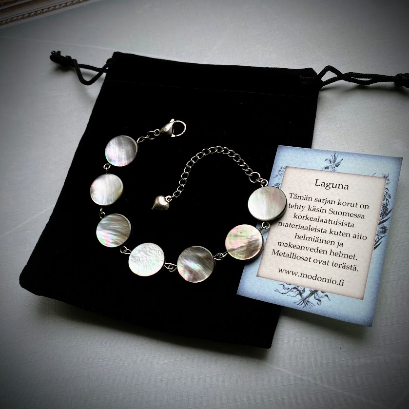 Selkeälinjainen Laguna 001 -rannekoru on tehty aidosta Tahitin helmiäisestä (madreperla). Jokainen osanen on uniikki ja heijastelee viehättävällä, luonnollisella tavalla.
