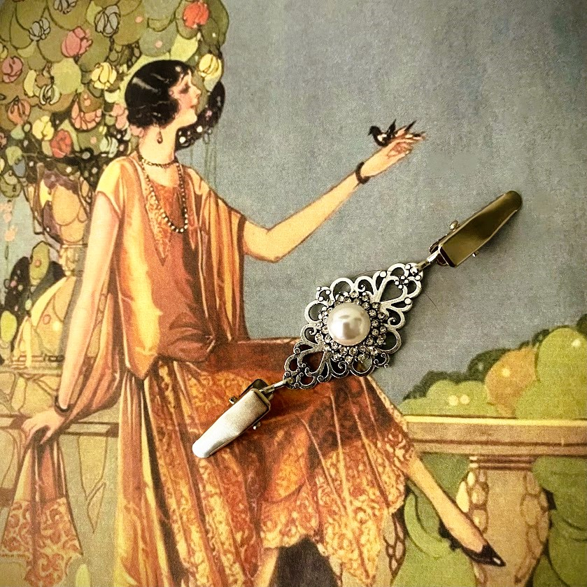 Helmiklipsi on verraton apu neuleen, jakun tai huivin sulkemiseen. Sillä on hyvä, napakka pito. Käytännöllinen ja toimiva klipsi viimeistelee asusi tyylikkäällä tavalla.