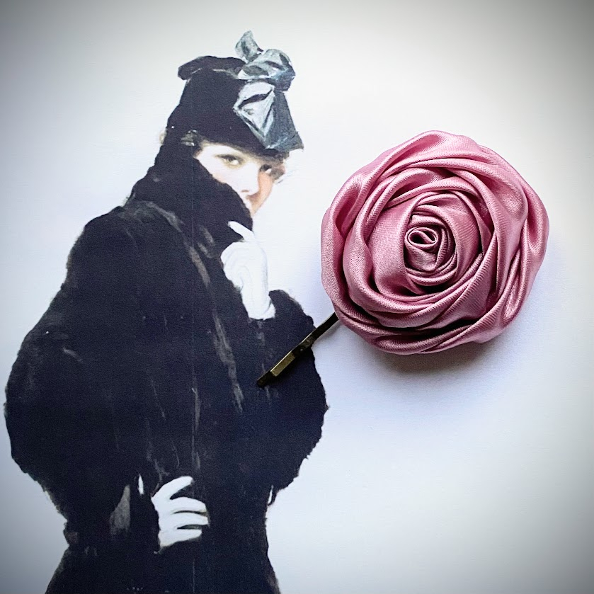 Pinnin pituus 5,5cm, ruusun halkaisija leveys n. 5cm