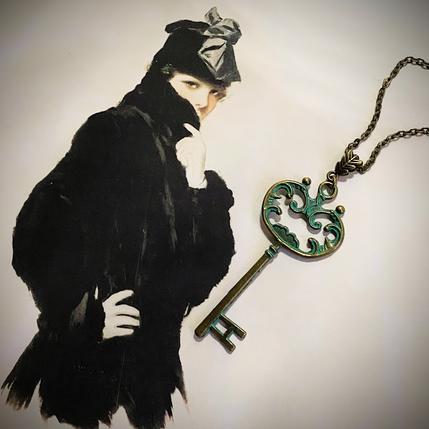 Nikkelittömässä kaulakorussa on viehättävä, patinoitu avainriipus.