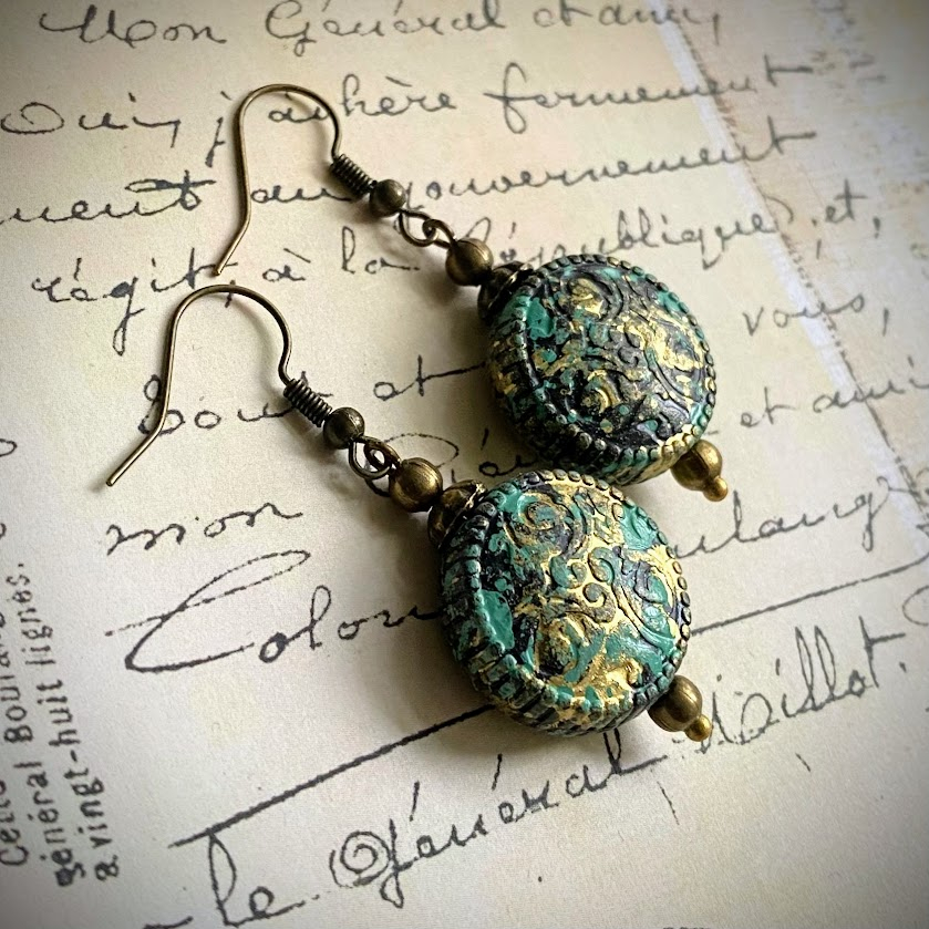 Kauniit, patinoidut riipukset on viimeistelty antiikkimessinginvärisillä detaljeilla.