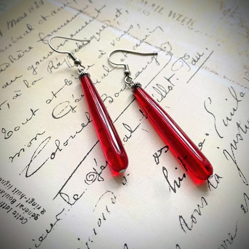 Kauniit granaattikvartsipisarat antiikkihopeanvärisillä detaljeilla.