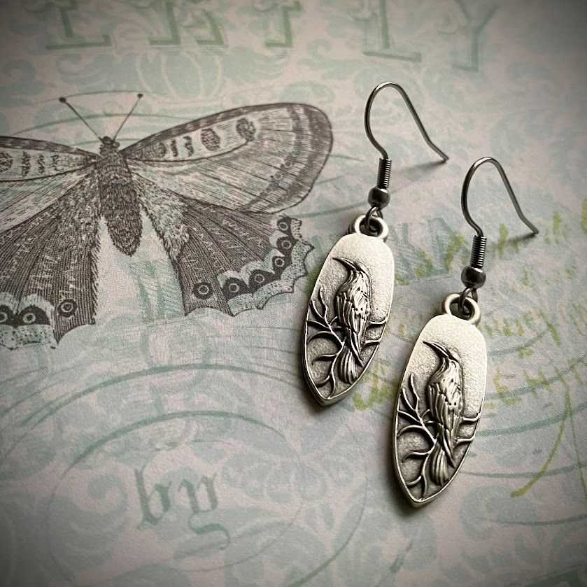 Upeat, käsityönä toteutetut kohokuvioidut, lintuaiheiset soikiot ovat nikkelitöntä korumetallia.