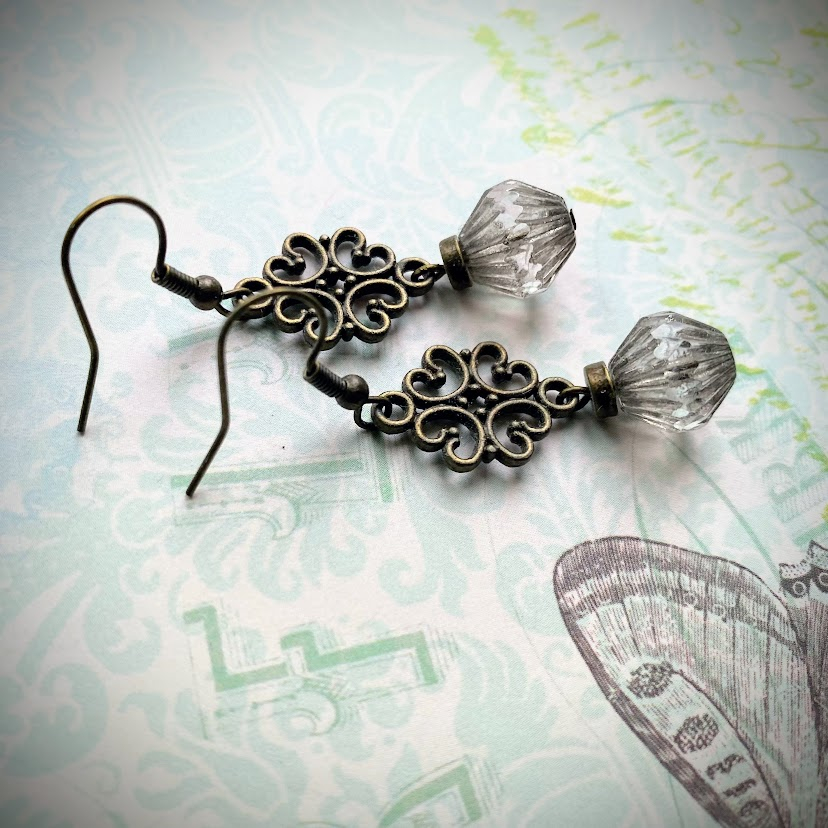 Viehättävästi muotoillut, antiikkipronssinväriset detaljit kannattelevat lasihelmiä, jotka ovat tsekkiläistä käsityötä.