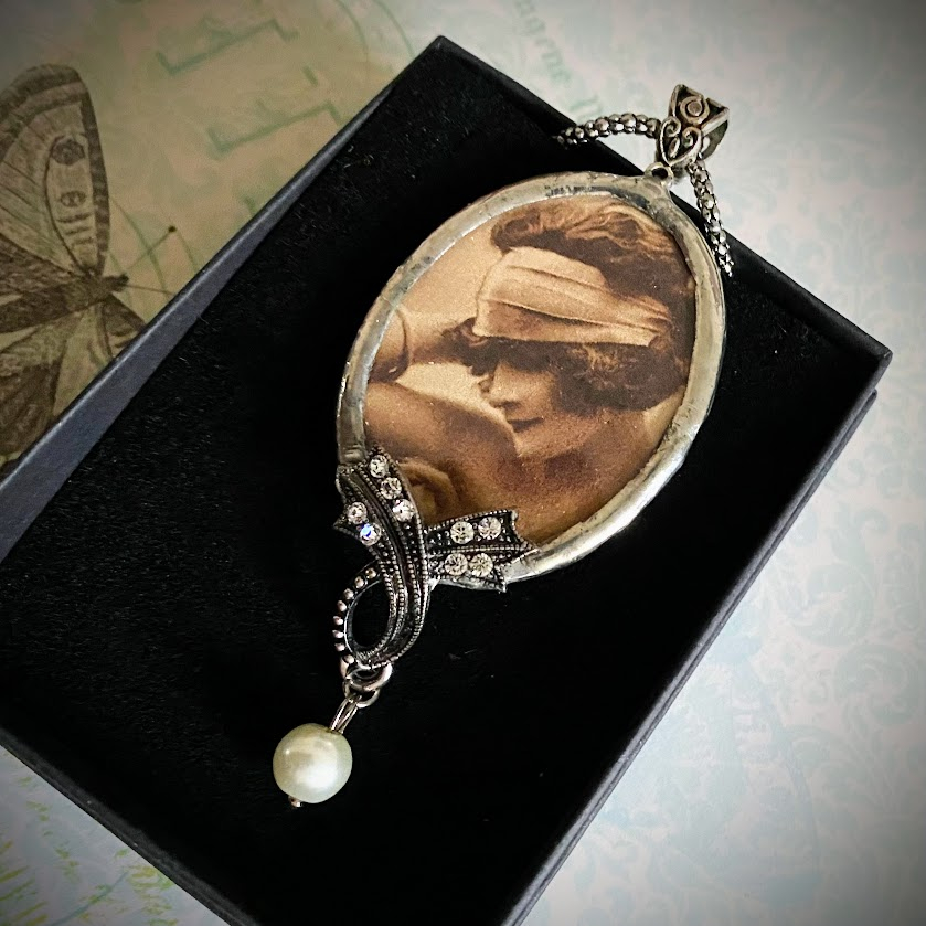 Tämä peilikoru on juotettu puhtaasta, lyijyttömästä korutinasta. Kuvapuolen takana peili. Ketjun pituus (n. 76cm) antaa sopivan liikkumavaran peilaamiseen: voit huomaamatta tarkistaa huulipunan tai kurkistaa, mitä olkasi takana tapahtuu.
