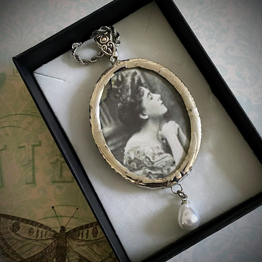 Tämä peilikoru on juotettu puhtaasta, lyijyttömästä korutinasta. Kuvapuolen takana peili. Ketjun pituus (n. 76cm) antaa sopivan liikkumavaran peilaamiseen: voit huomaamatta tarkistaa huulipunan tai kurkistaa, mitä olkasi takana tapahtuu.
