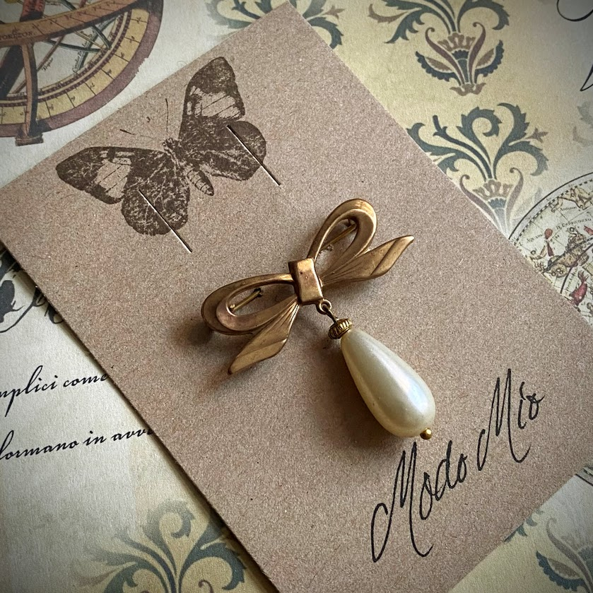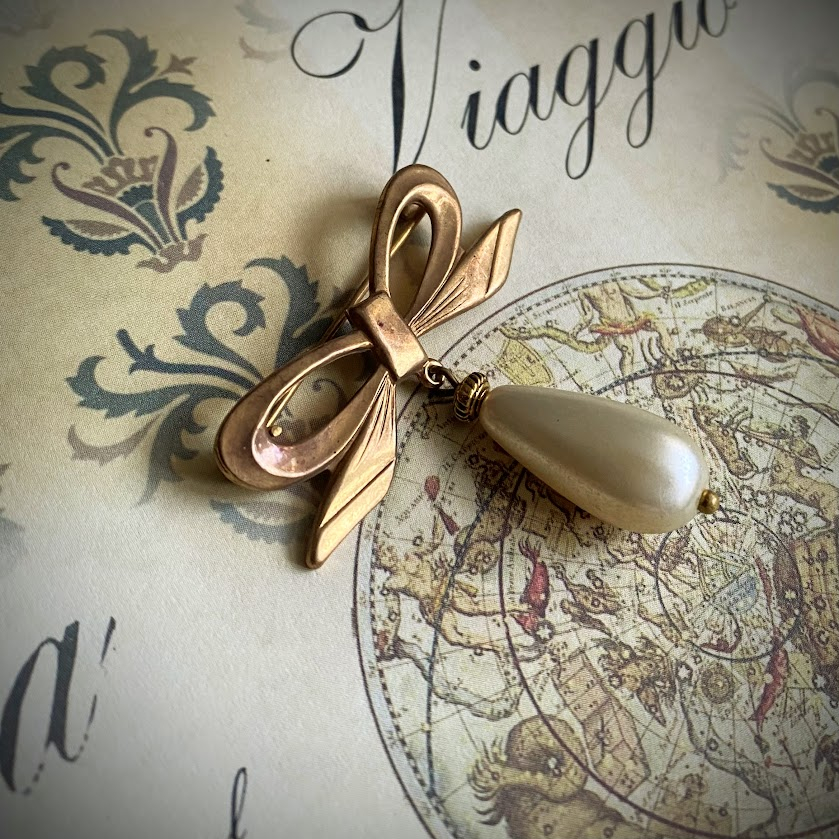 Rusettirintakoru on peräisin miltei sadan vuoden takaa (ostettu samalta amsterdamilaiselta antiikkikauppiaalta kuin rukousnauhat. Rintakoru on viimeistelty pisarariipuksella.