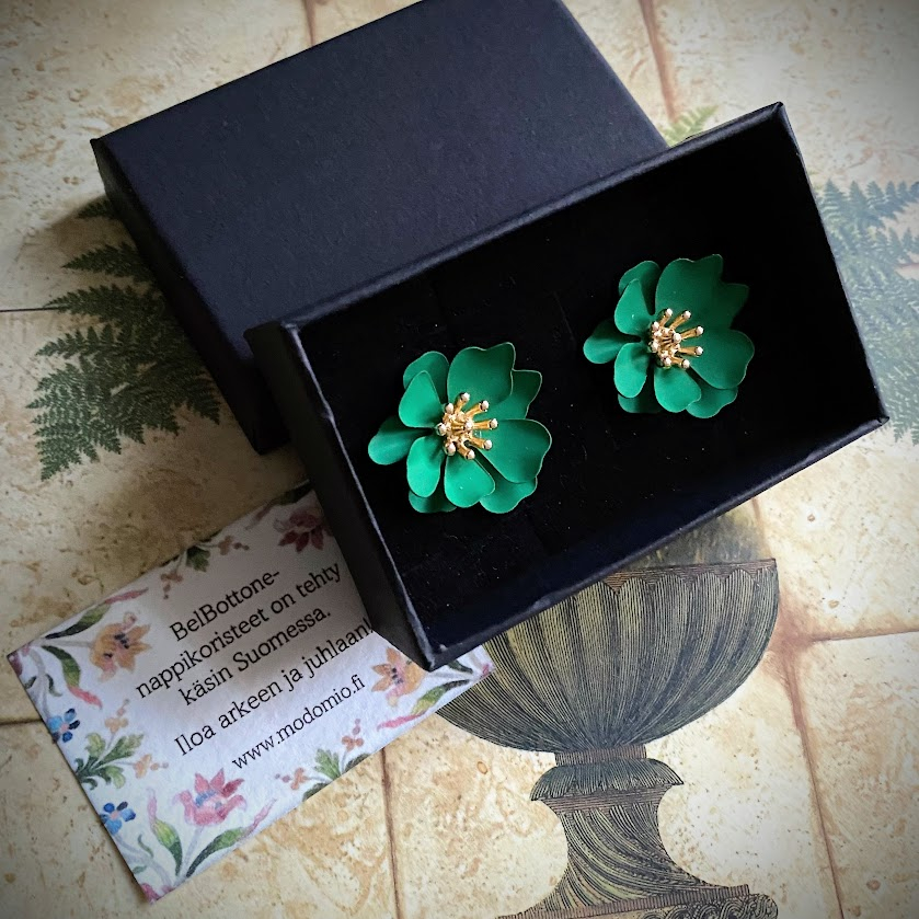 Nämä värikkäät, kukanmuotoiset nappikorut antavat hetkessä asullesi persoonallisen, viimeistellyn ilmeen.