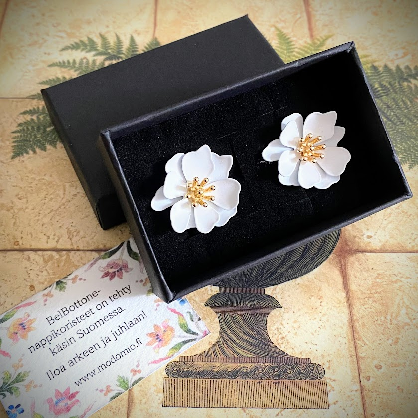 Nämä värikkäät, kukanmuotoiset nappikorut antavat hetkessä asullesi persoonallisen, viimeistellyn ilmeen.