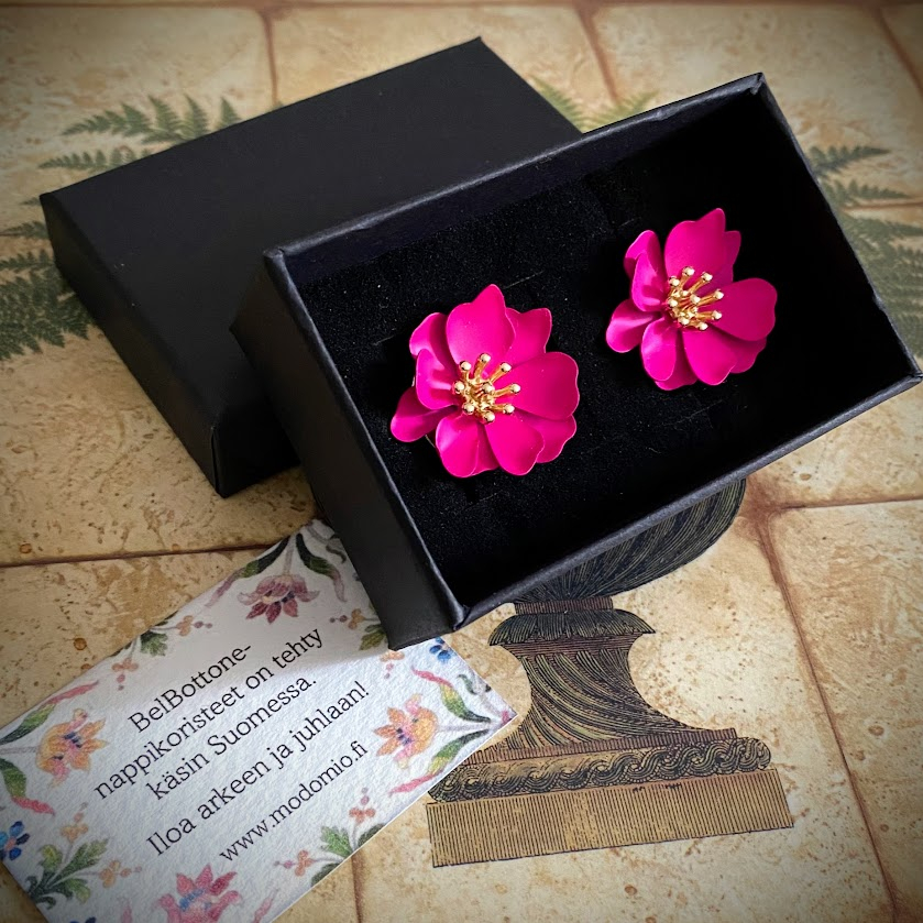 Nämä värikkäät, kukanmuotoiset nappikorut antavat hetkessä asullesi persoonallisen, viimeistellyn ilmeen.