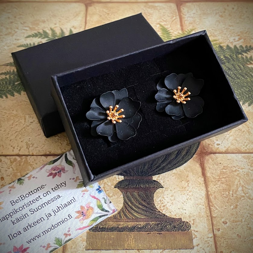 Nämä värikkäät, kukanmuotoiset nappikorut antavat hetkessä asullesi persoonallisen, viimeistellyn ilmeen.