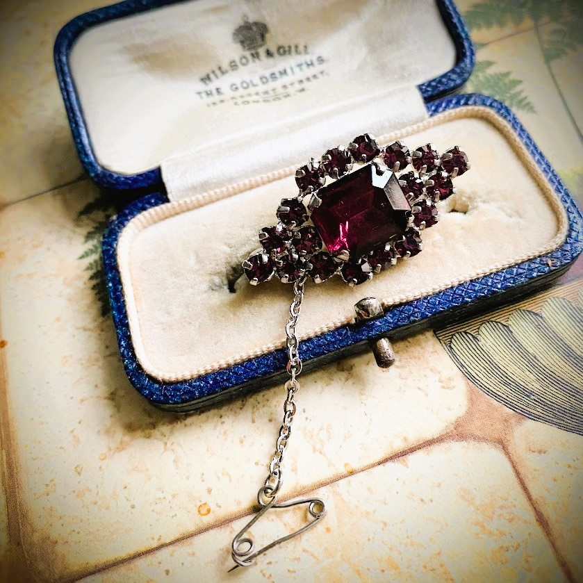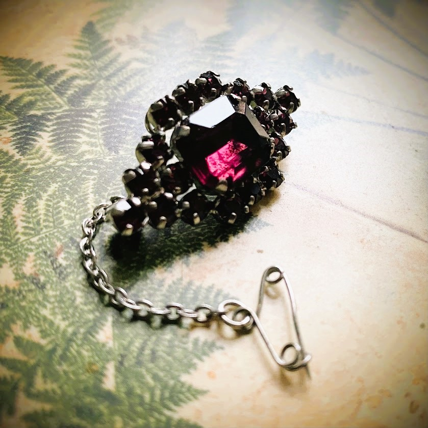 Tämä viehättävä rintakoru on peräisin 1950-luvulta. Se on varustettu turvaketjulla.