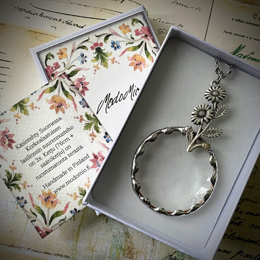 Tyylikäs, Suomessa käsintehty suurennuslasikoru on verraton apu, joka kulkee aina mukana.